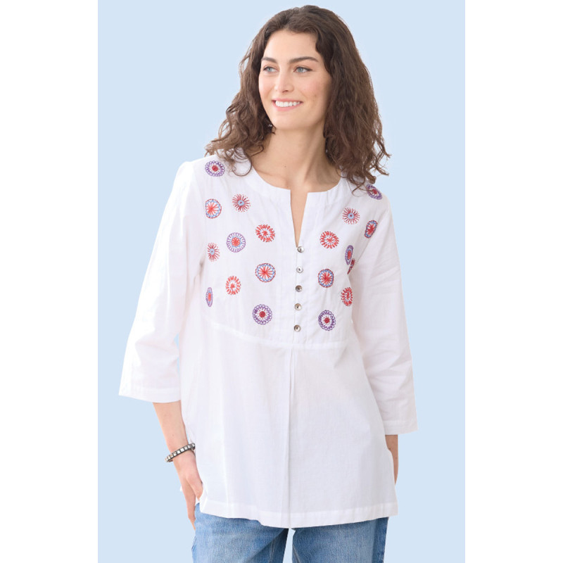 Naseera Notch Neck Embroidered Organic Top - White/Multi